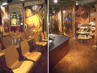 GMD prepared interior design concept for cooking school and retail store. GMD art directed large scale billboard prints serving as room dividers. GMD designed and fabricated interior furnishings and custom stackable chairs.